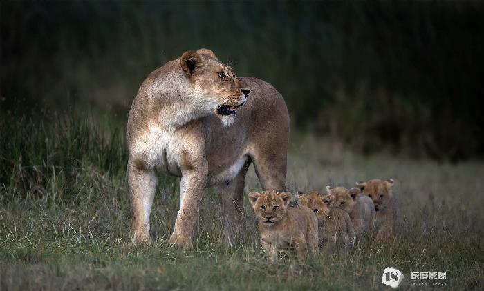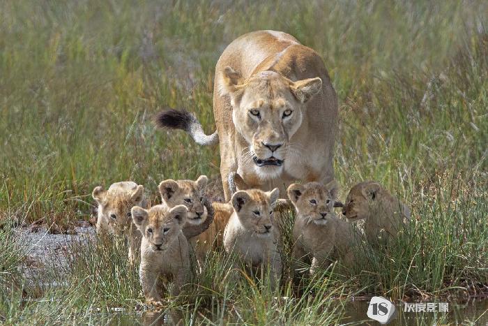 Mother lion and her four children