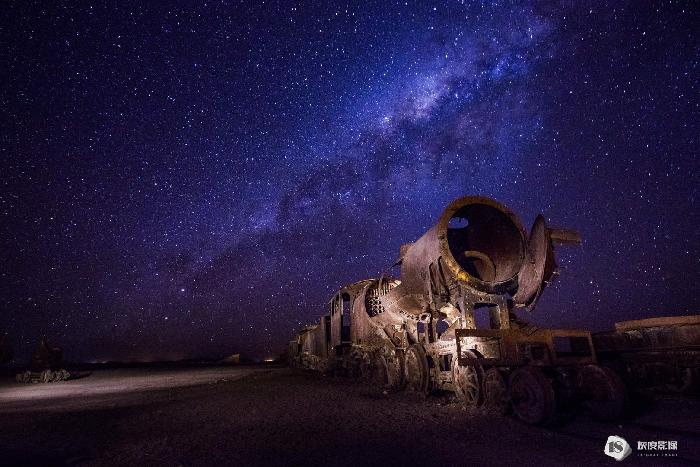 Train under galaxy