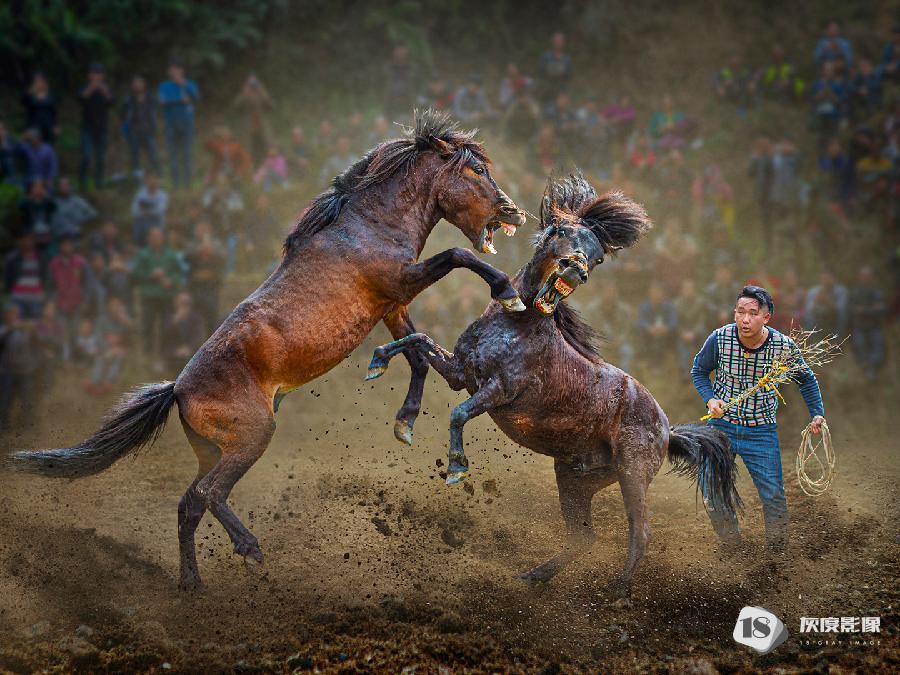 大赛银牌、全球华人摄影联合会GCPA铜牌 Heng Liang Wu, Taiwan,China Horses raise his legs for fighting
