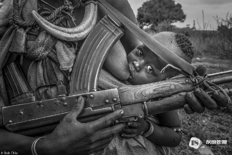 评委点评:这是一幅极具冲击力的作品,它充满不和谐的因素但又深深触动人心。图片描绘了许多非洲妇女所经历的苦难,同时也表达了她们的坚强和坚韧。图片添加了各样华丽的纹理:疣猪的獠牙、枪托、绳子、铃铛、头发,总之,您完成了一次出色的创作。