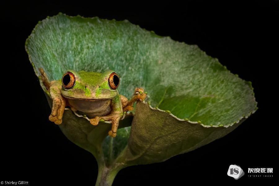 A small amphibian sits on a rain tree leaf. Kruger National Park, South Africa. © Mattheuns Pretorius