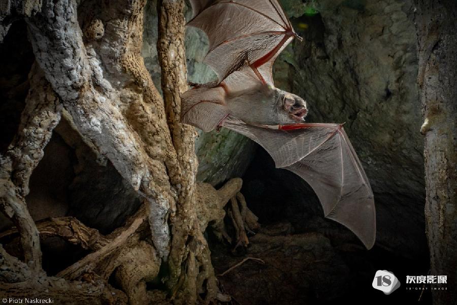 Mozambican long-fingered bat (Miniopterus mossambicus) emerging from the Codzo Cave. Gorongosa National Park, Mozambique. © Piotr Naskrecki