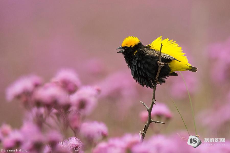 Yellow-crowned bishop in full voice. Rietvlei Nature Reserve, South Africa. © Eleanor Hattingh
