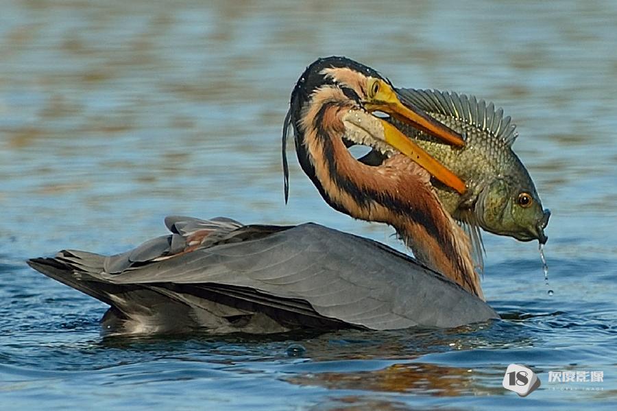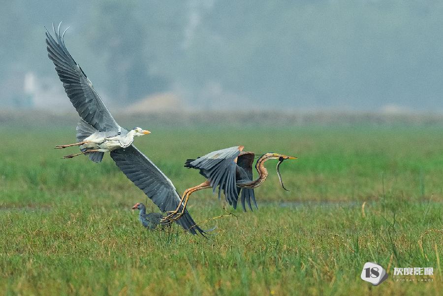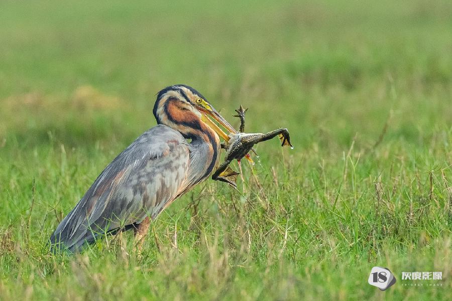 purple heron killing frog