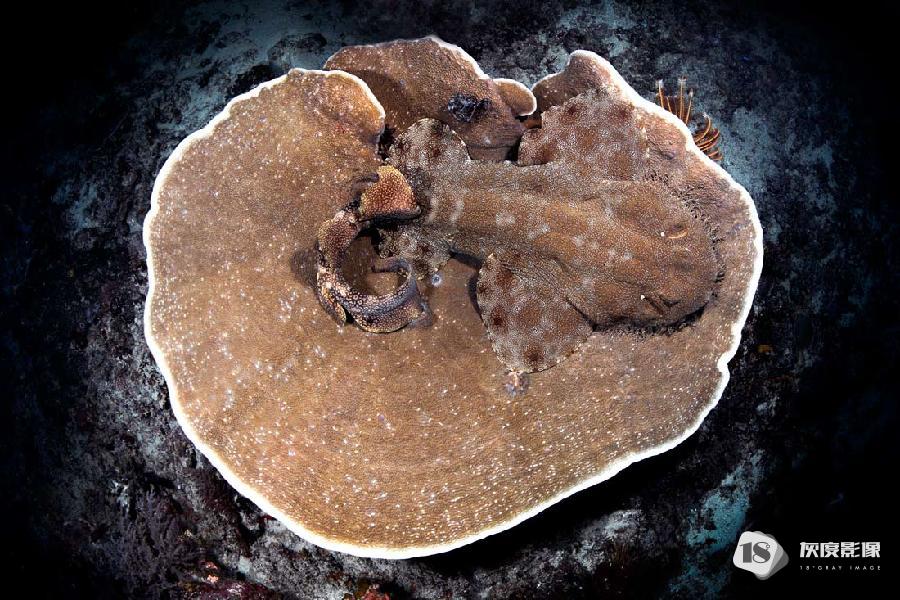 WOBBEGONG SHARK ON A TABLE CORAL