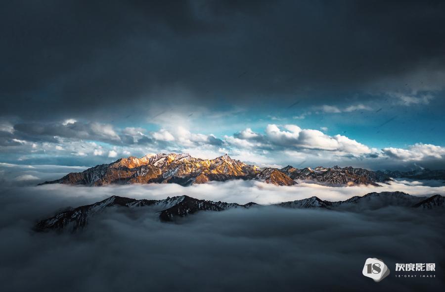 日落下的贡嘎雪山云海