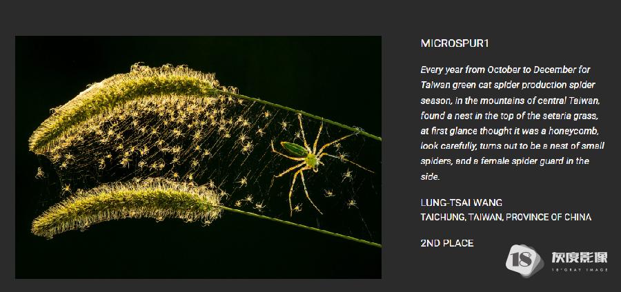 近日,阿联酋沙迦XPOSURE国际摄影奖结果揭晓。灰度影像会员王龙财,摄影作品'MICROSPUR1'荣获自然与风景摄影组第二名,获得1500美元现金奖励,并受邀前往沙迦参加颁奖典礼角逐全场大奖,组委会赠送往返机票和7天酒店住宿,获奖作品将在Xposure国际摄影节进行展出。